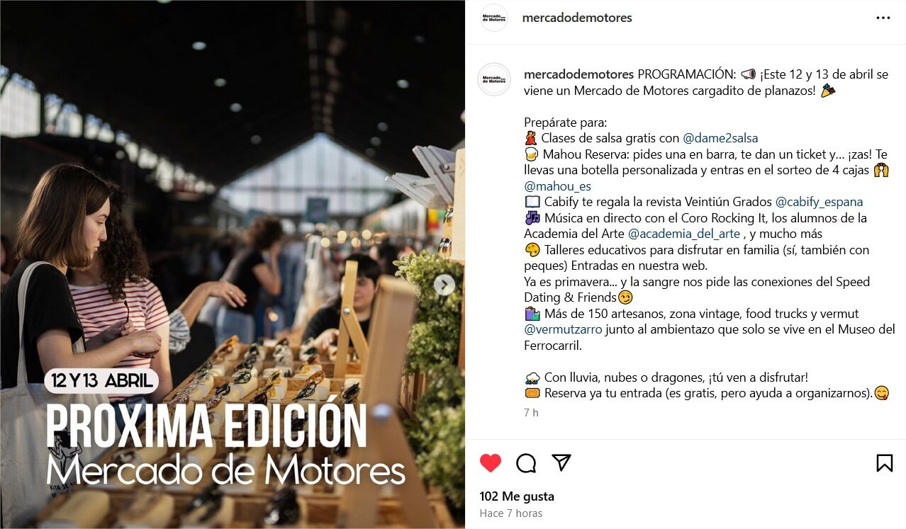 Desde hace más de 10 años, Mercado de Motores reúne el segundo fin de semana de cada mes -y algunas otras fechas específicas- a más de 150 artesanos, diseñadores, creadores, libreros, artistas, productores de alimentación gourmet y especialistas en segunda mano/vintage en el Museo del Ferrocarril de Madrid.
