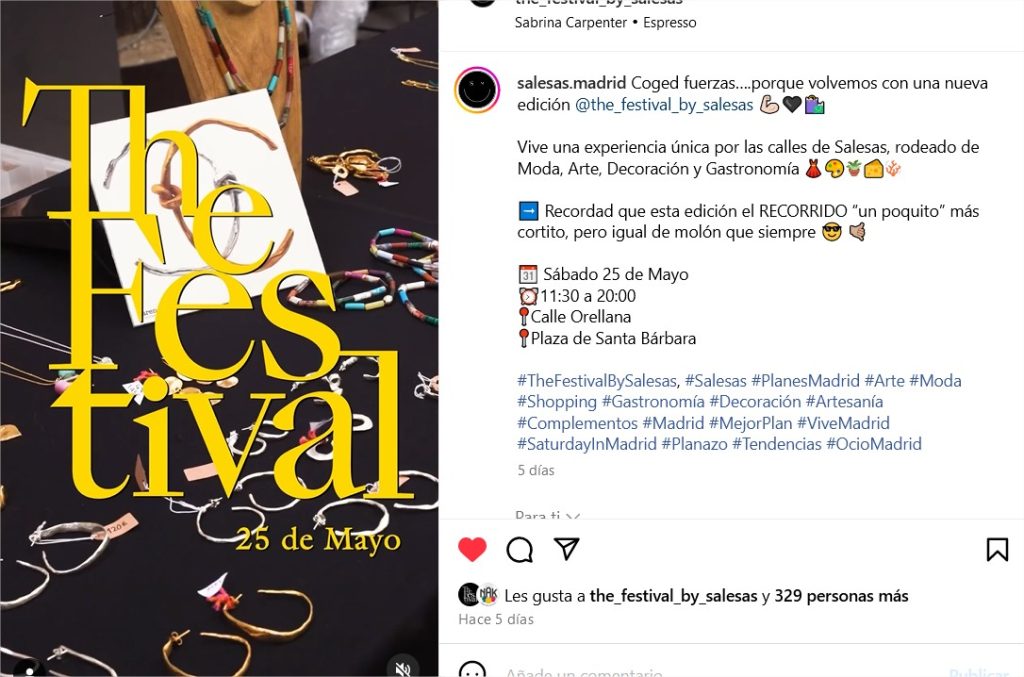 [The Festival], es un Street Markt alocado, cosmopolita y único en Madrid. Un espacio al aire libre donde moda, arte, gastronomía, cultura, música y el buen rollo sale a la calle, el primer sábado de cada mes, para convertirla en una experiencia que no querrás olvidar.